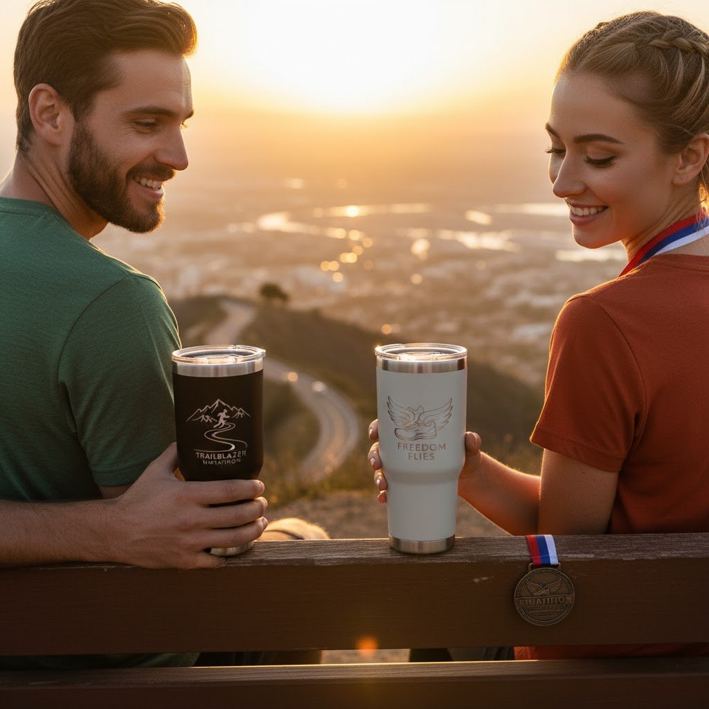 "This tumbler is fantastic! I've used it for both hot coffee on cold mornings and ice water during long runs, and it keeps my drinks at the perfect temperature for hours. The 'Trailblazer Marathon' design is etched perfectly and doesn't fade. It's sturdy, easy to clean, and the size is just right for daily hydration. A must-have for anyone on the go, celebrating their journey!"