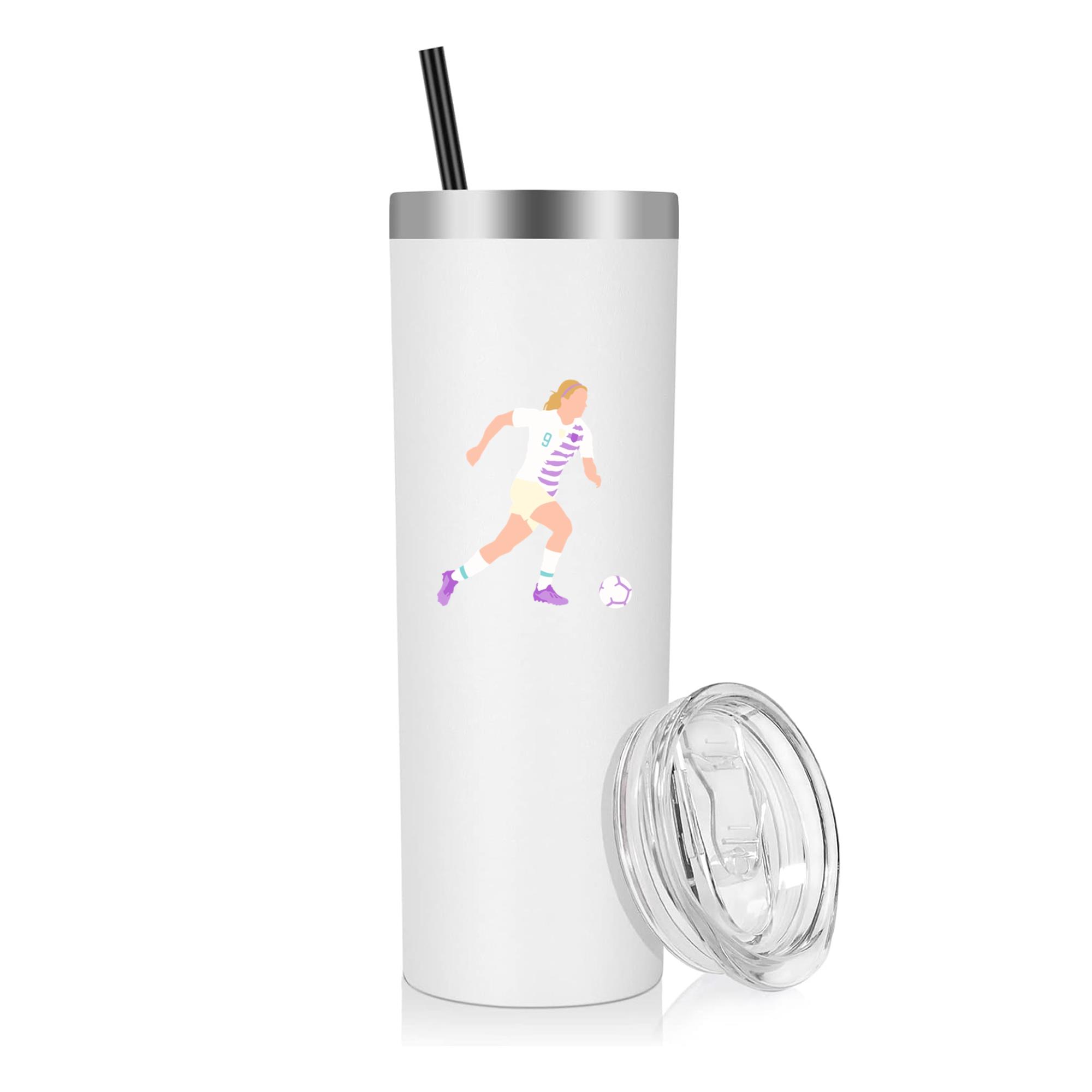 Woman Soccer Player Kicking Flat 20oz Stainless Steel Tumbler 20oz Stainless Steel Tumbler – Double-Wall Vacuum Insulated Travel Cup with Lid