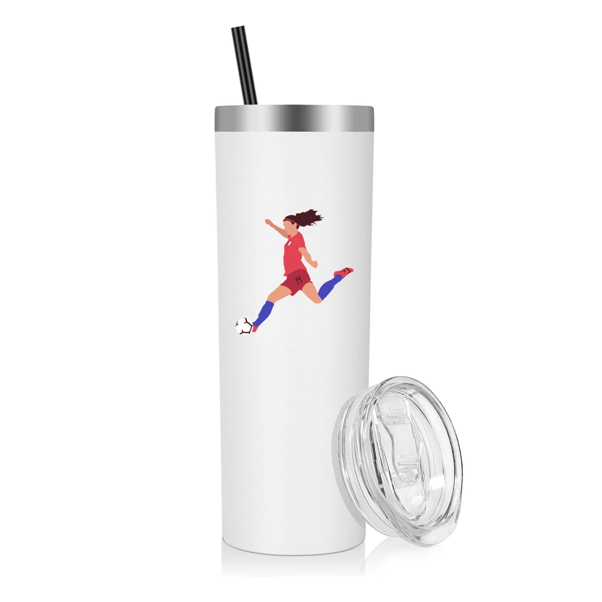 Woman Soccer Player Kicking Football Flat 20oz Stainless Steel Tumbler 20oz Stainless Steel Tumbler – Double-Wall Vacuum Insulated Travel Cup with Lid