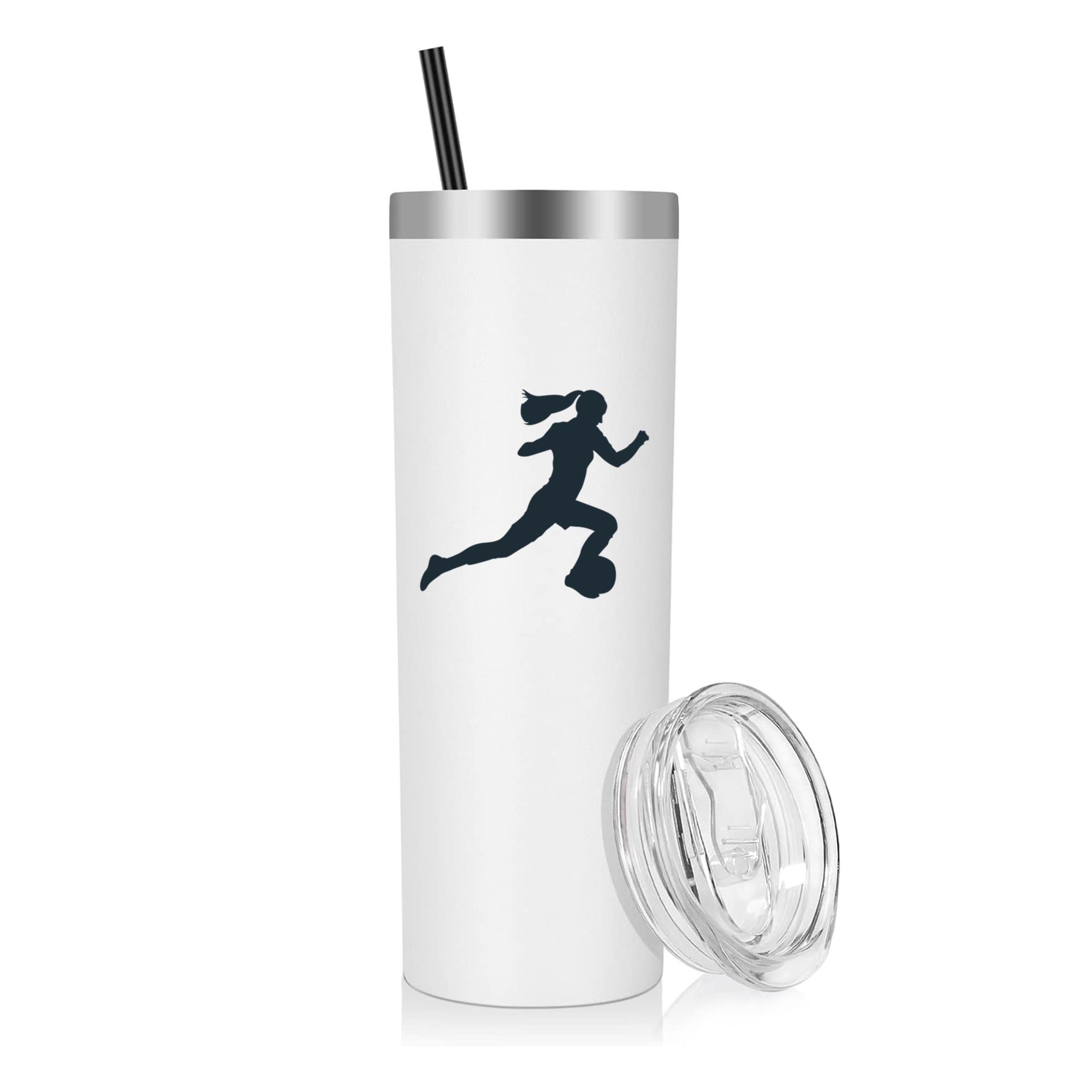 Woman Sprinting With Ball Silhouette 20oz Stainless Steel Tumbler 20oz Stainless Steel Tumbler – Double-Wall Vacuum Insulated Travel Cup with Lid
